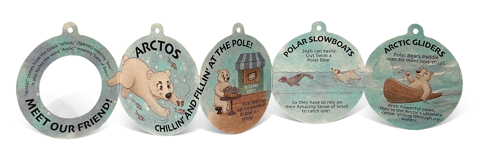 Meet Arctos! His name comes from the Greek word ‘arktos,’ meaning ‘bear,’ and it’s also the root of ‘Arctic,’ his frosty home—how ‘cool’ is that?