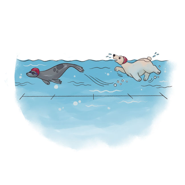 over 60 miles non-stop! With powerful paws, they’re the Arctic’s ultimate canoe, gliding through icy waters.