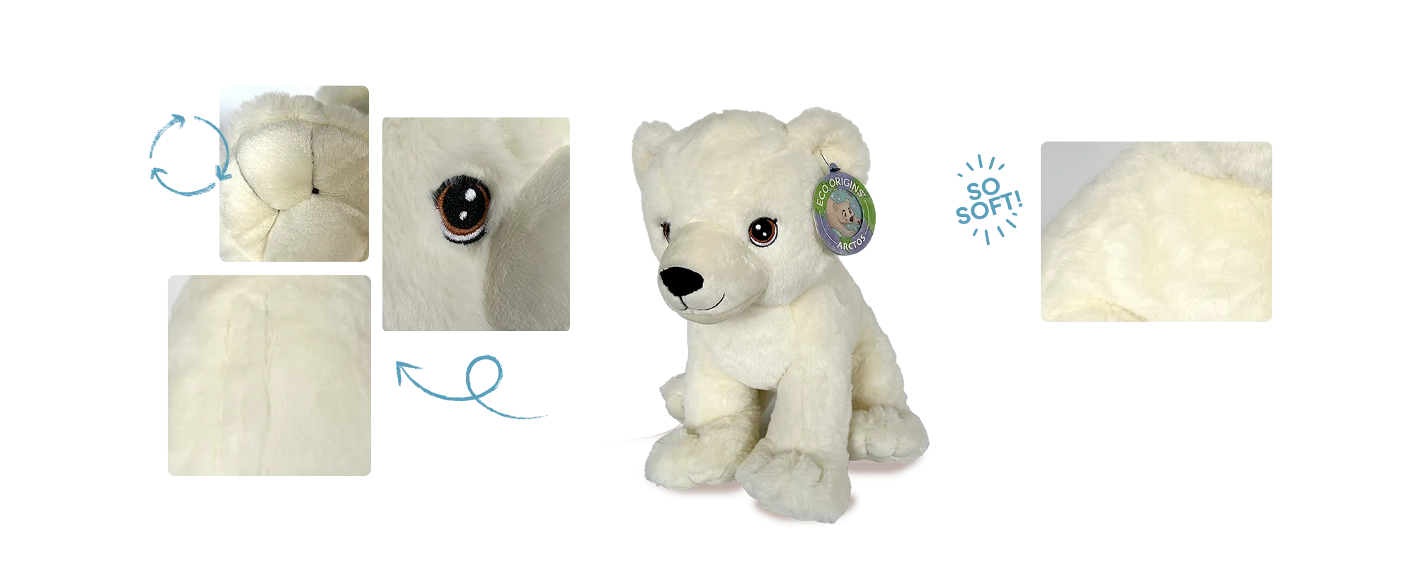 We scour the best recycled material fabrics so that our plush always feels premium and soft to the touch!