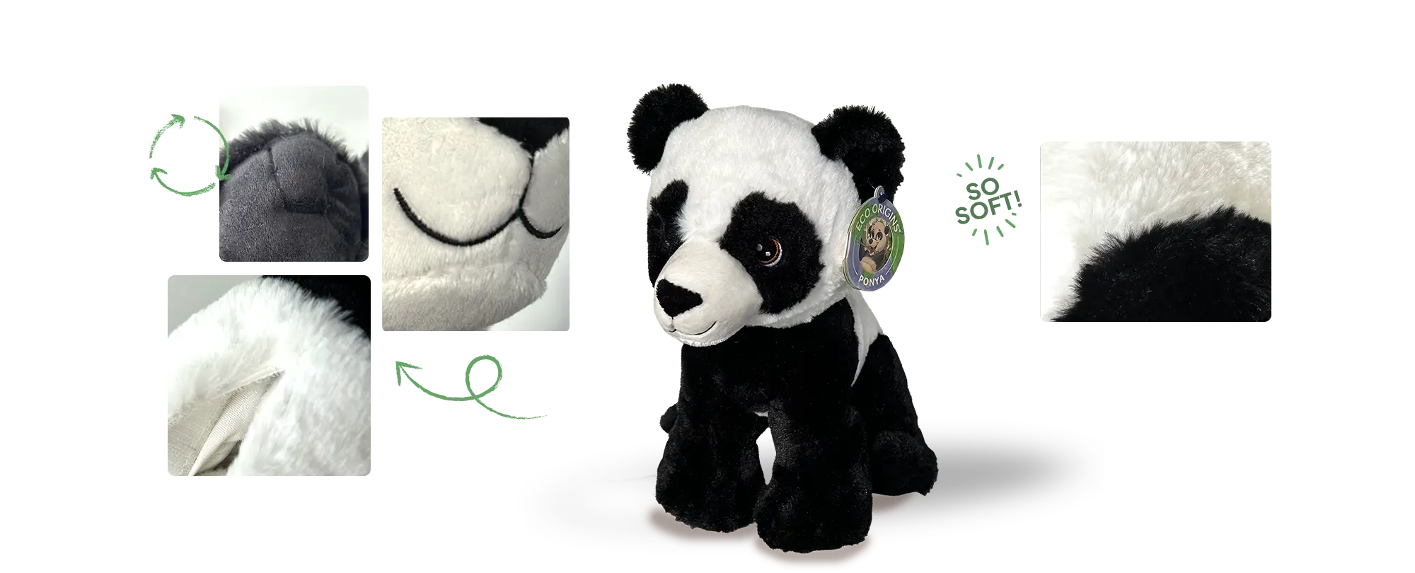 We scour the best recycled material fabrics so that our plush always feels premium and soft to the touch!