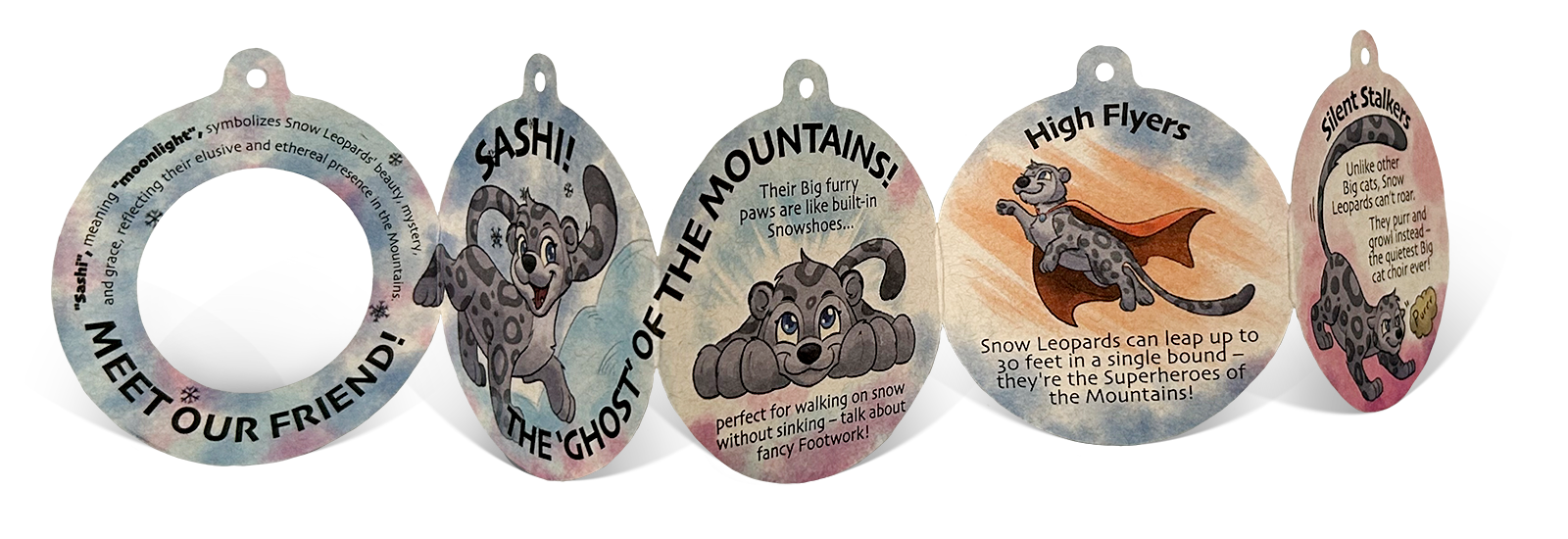 Say hi to Sashi! Her name means ‘moonlight,’ and it’s as magical as she is. Sashi is a Snow Leopard—a true ‘Ghost of the Mountains,’ known for her beauty, mystery, and graceful presence.
